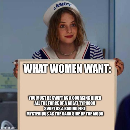 Women don’t want you to be mysterious, they want a dick (or strapon) made of chocolate that ejaculates money. Hell, I want a dick or strapon made of chocolate that ejaculates money, and I’m a dog!