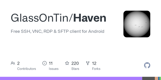 For context, Haven is a fairly new open source (GPLv3) SSH client for Android.