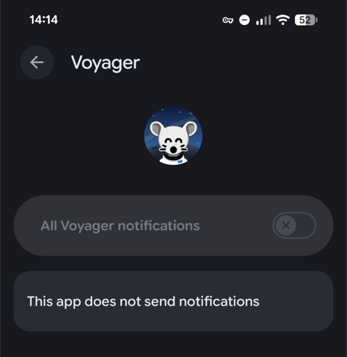 oh, I thought OP’s point is Voyager does not even want you to bother with notifications that could make you more addicted