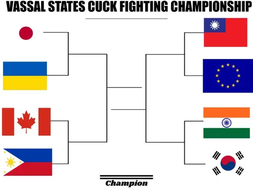 • I mean the EU really is an og cuck and many cucks can learn some moves from them. In the end I think south Korea has some outstanding tactics like taking the most toxic parts of US “culture” and blending them in a very profitable way. That plus prostituting their own military (Vietnam war comes to mind) makes them just too stupid sexy to not advance to finals imo.