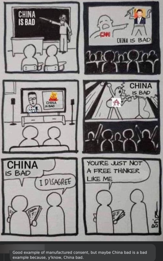 I really don’t know what it’s like in China because I’ve never been there. I know some people who are from China but they’ve never really talked about anything other than visiting their families. All I hear comes from the US propaganda machine, so I can’t really have an informed opinion. This is probably how it should be for like 95% of Americans. We don’t need to have an opinion about everything ffs.