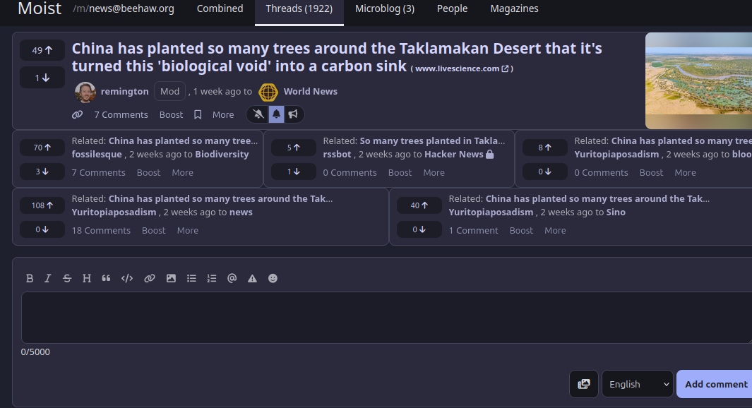 on mbin multiple link posts are displayed so i can pick which one across the verse has the most comment activity in which to partipate