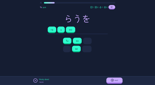 Here’s the best part: I added a gazillion different color themes, fonts and other crazy customization options, inspired directly by Monkeytype. Also, I made the app resemble Duolingo, as that’s what I’m using to learn Japanese at the moment and it’s what a lot of language learners are already familiar with.
